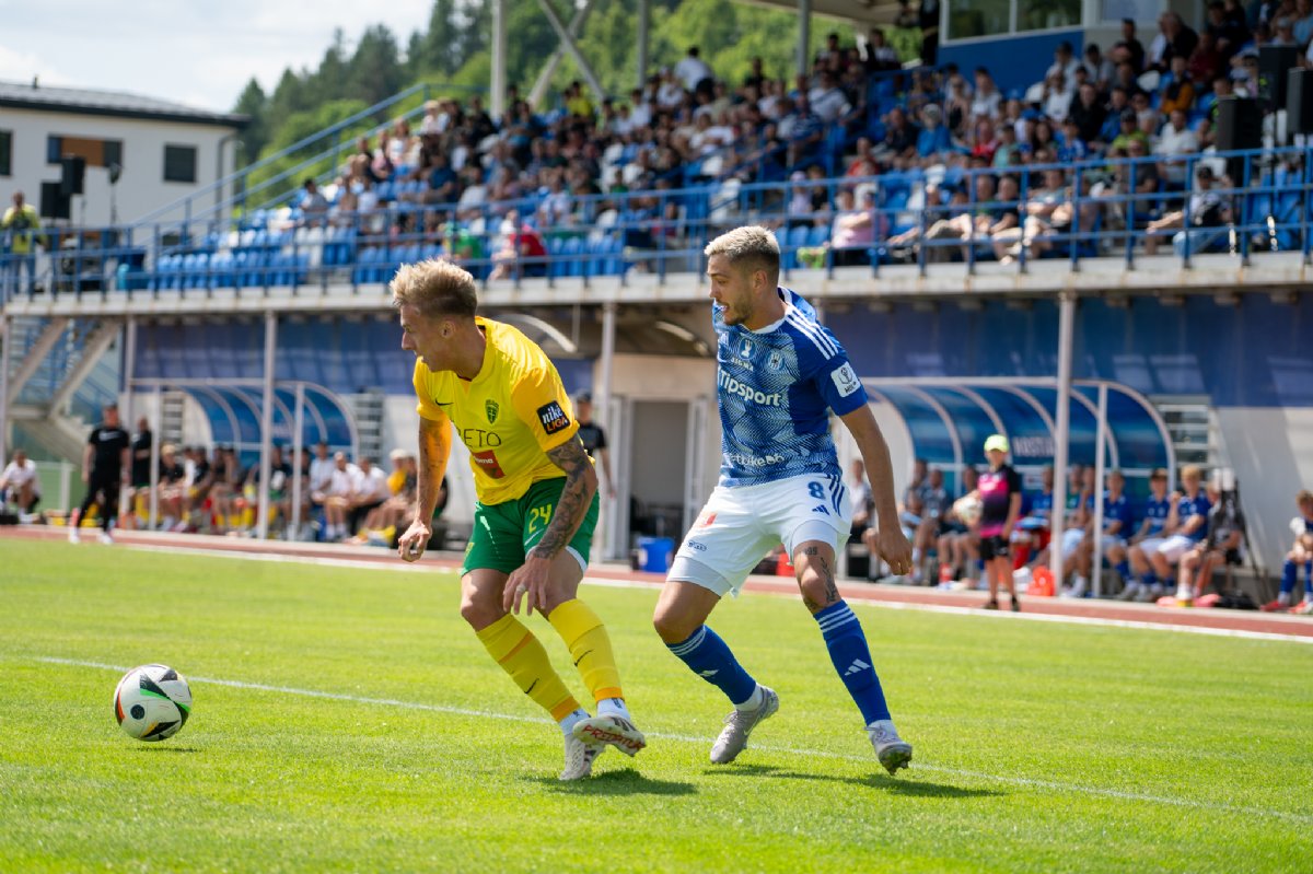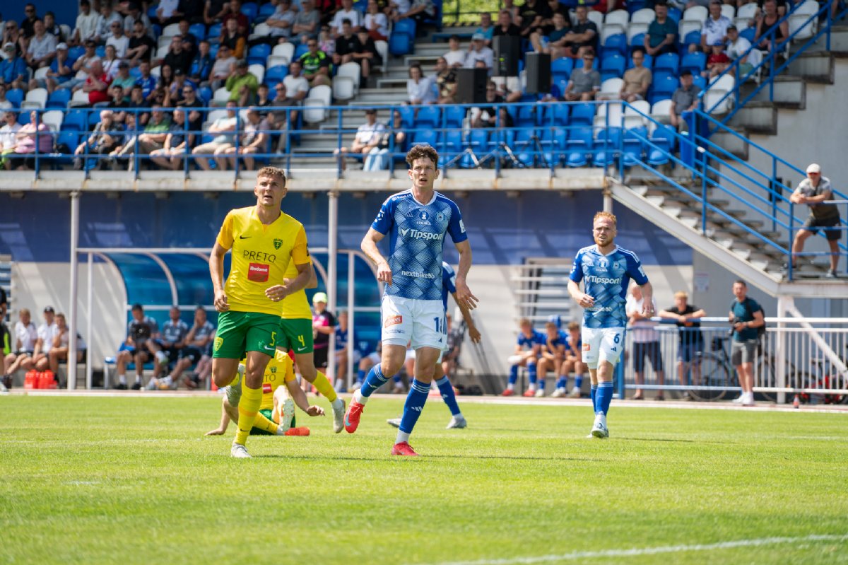 Trenér Janotka dal v úvodní půli příležitost oběma nejčerstvějším posilám, které má již k dispozici. V brance nastoupil s kapitánskou páskou Matúš Hruška, ve stoperské dvojici s Michalem Leiblem byl Tomáš Huk.