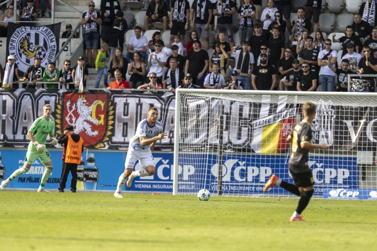 V úvodní desetiminutovce došlo k jednomu menšímu vzrušení před hradeckou bránou. Rohový kop rozehrál v 9. minutě Kostadinov, poslal míč do ohně, ale žádný z jeho spoluhráčů ho v menším závaru nedokázal protlačit za záda gólmana.