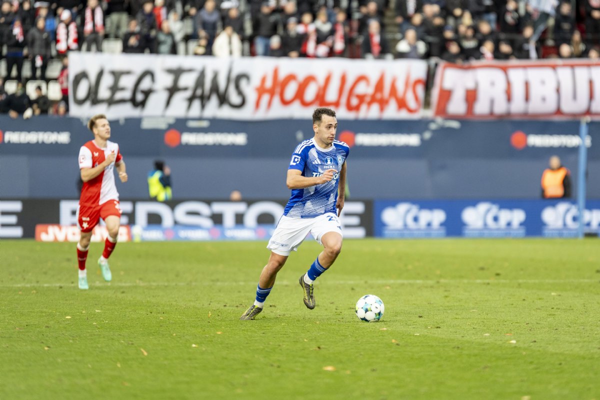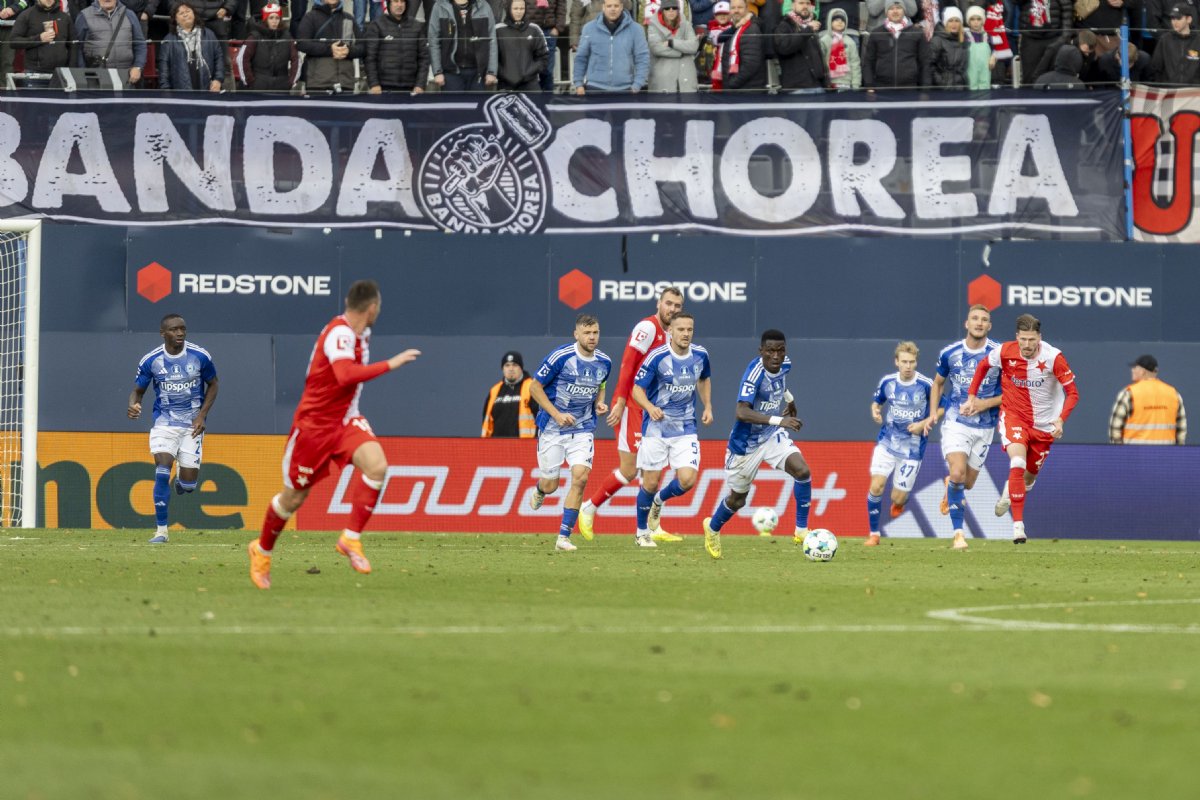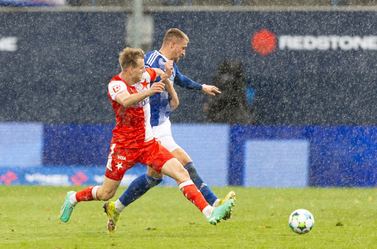 Hanáci šli do zápasu proti Slavii tři dny po náročném čtvrtečním klání s Rakówem. Trenér Tomáš Janotka udělal tři změny v základní sestavě. Do ní se vrátil kapitán Radim Breite, od úvodních minut nastoupili také Matěj Hadaš a Artur Dolžnikov.