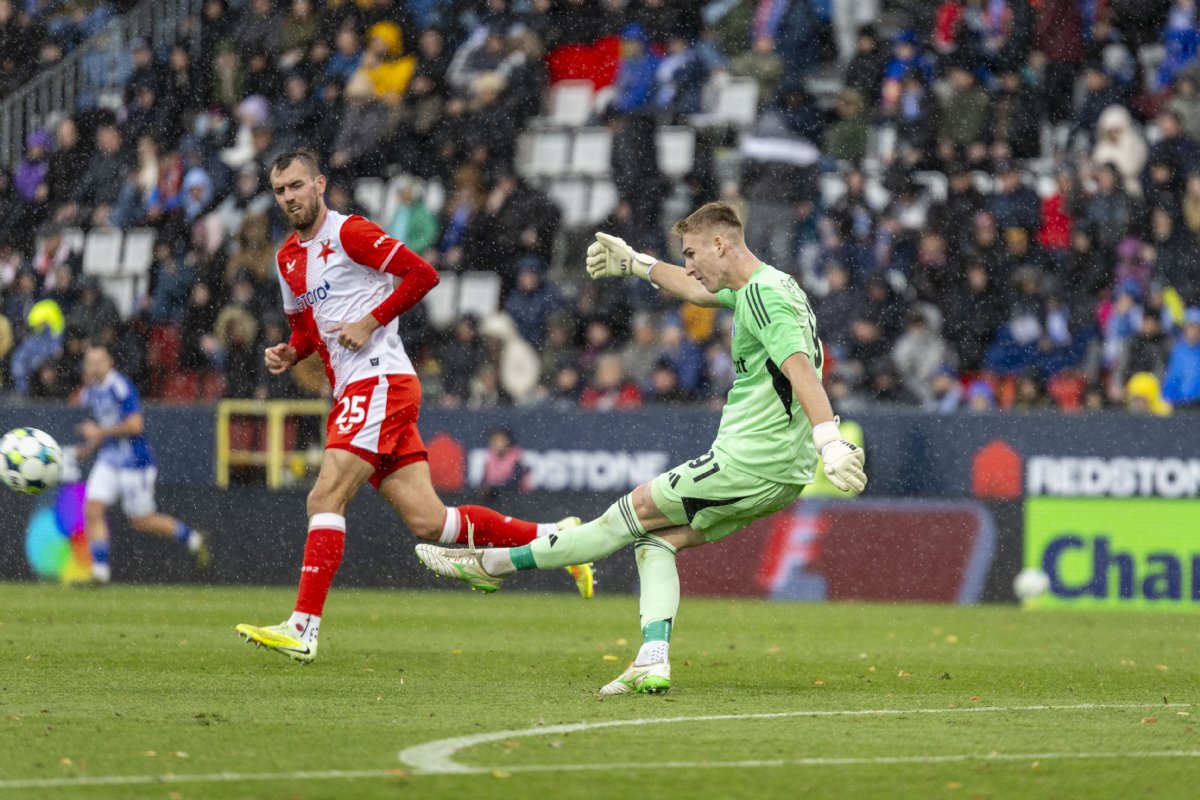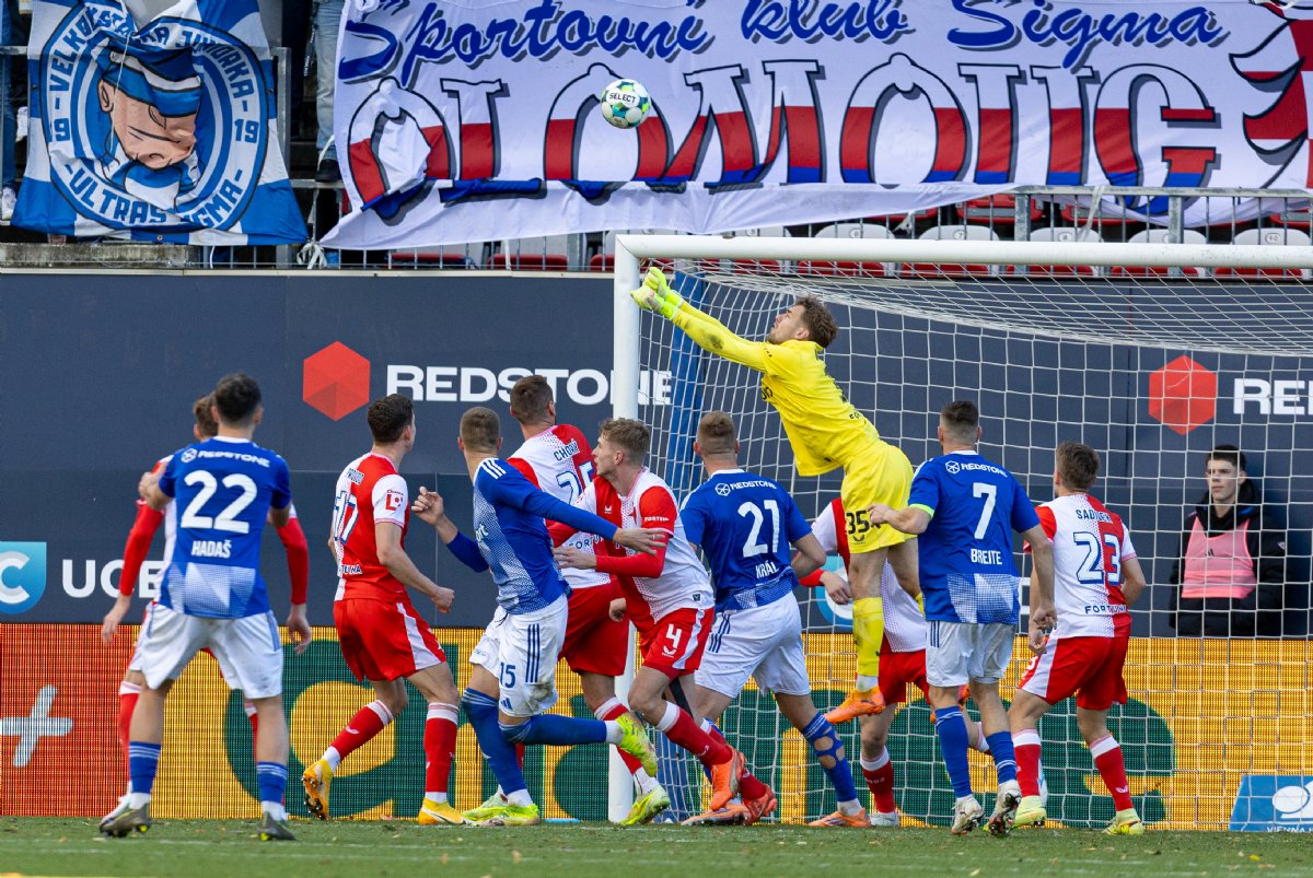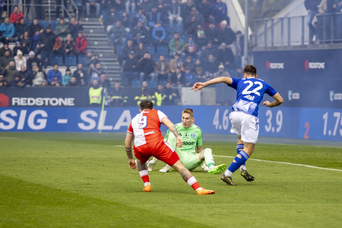 Gólman Jan Koutný v bráně Sigmy začal zápas proti Slavii stejným způsobem, jakým odstartoval i čtvrteční duel s Rakówem – důležitým zákrokem. Od úvodního hvizdu neuplynula ještě ani jedna minuta, když nedorozumění olomoucké defenzivy využil Vasil Kušej. Nejproduktivnější hráč Chance Ligy se řítil sám na Koutného, ten však zachoval chladnou hlavu, počkal si na zakončení slávistického hráče a míč na zemi lapil.